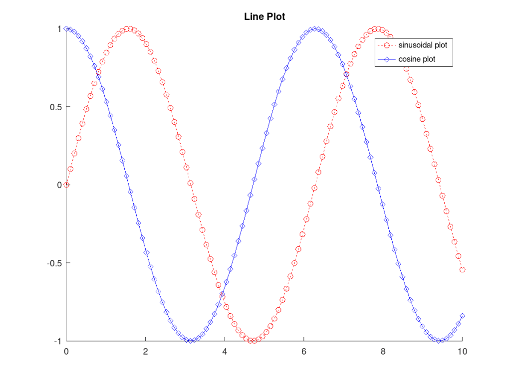 legend("sinusoidal plot", "cosine plot");