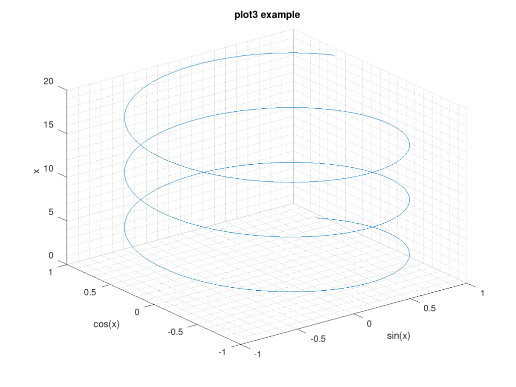 title("plot3 example");Download Script as .m file from GitHub.