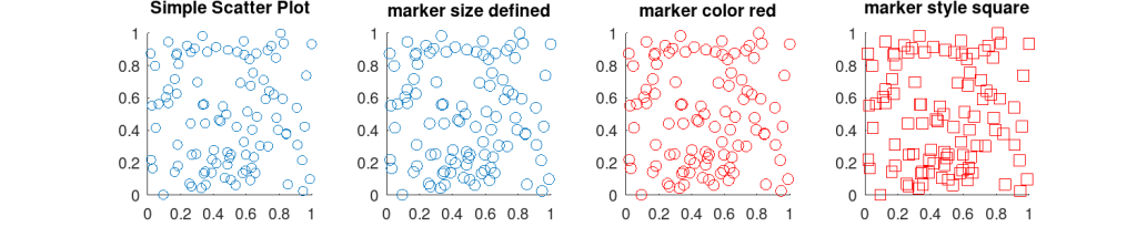 scatter(x, y); % no extra input parameters